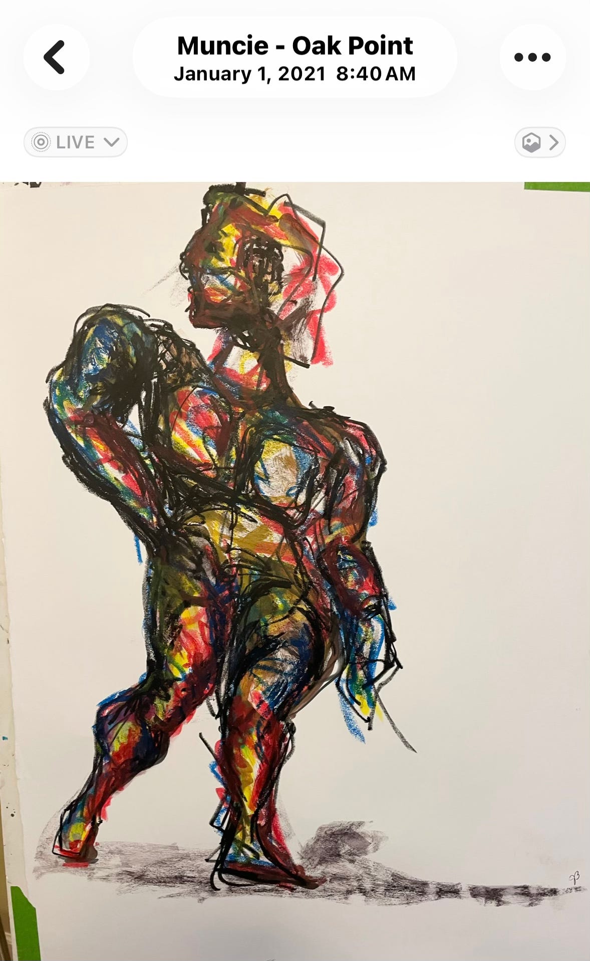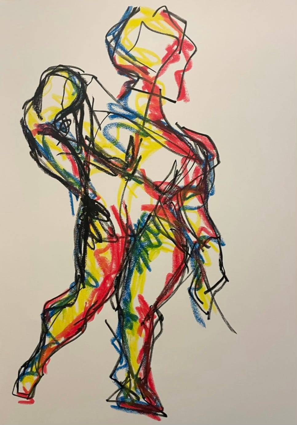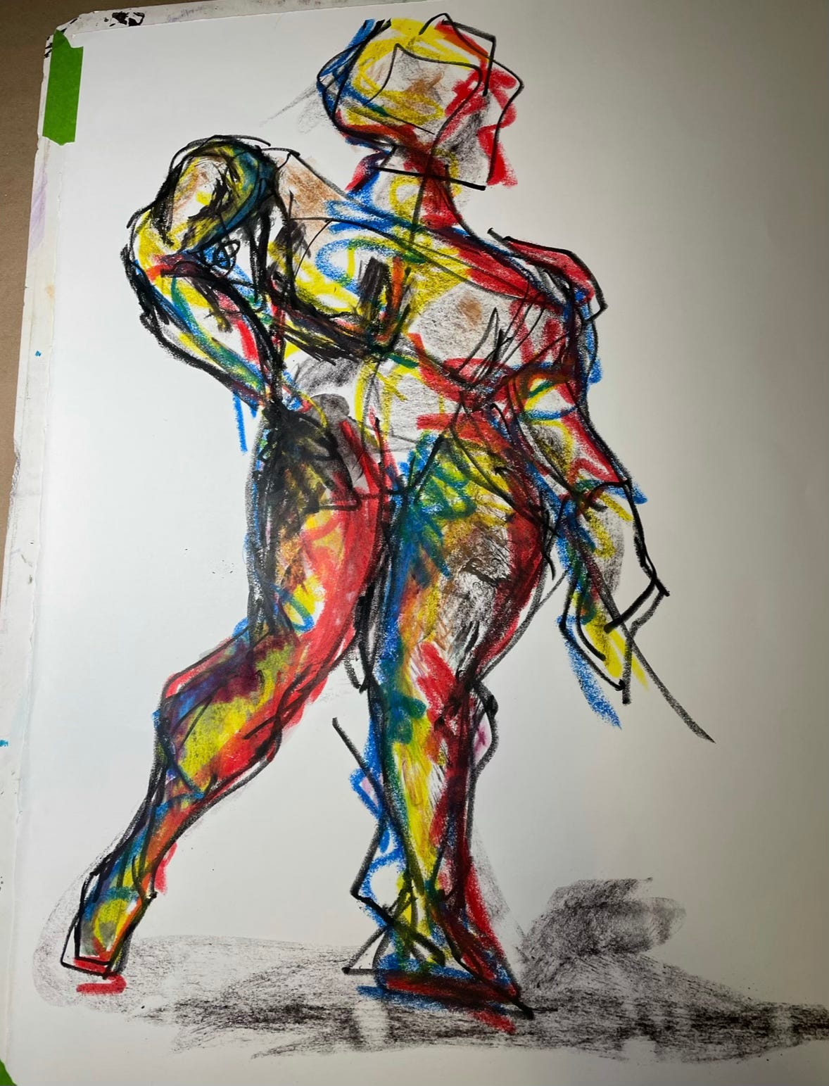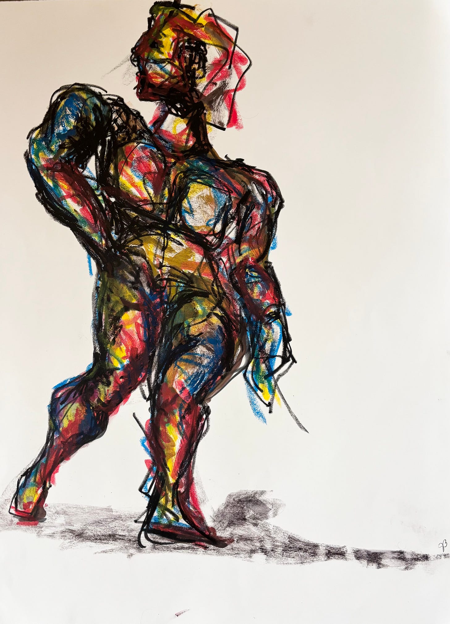 “New Year’s Eve Man” (2020)… in phases. This figure wasn’t planned or corrected. It’s raw nerve and instinct — a body made of conflict, strength, memory, and motion. The proportions fight each other, the colors collide, the lines refuse to behave — and because of that, it feels human. It’s not polite. It’s alive.